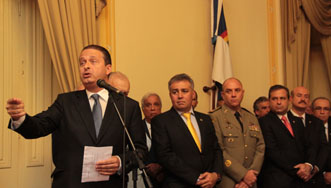 O governador Eduardo Campos e o secretário de Defesa Social, Wilson Damázio, anunciaram, na manhã desta sexta-feira (06), um pacote de ações de investimentos no Pacto pela Vida (PPV). O anúncio aconteceu durante a solenidade de posse do novo Comandante Geral da Polícia Militar, Coronel Luís Aureliano, e do Chefe da Polícia Civil, o delegado Osvaldo Morais, no Palácio do Campo das Princesas.